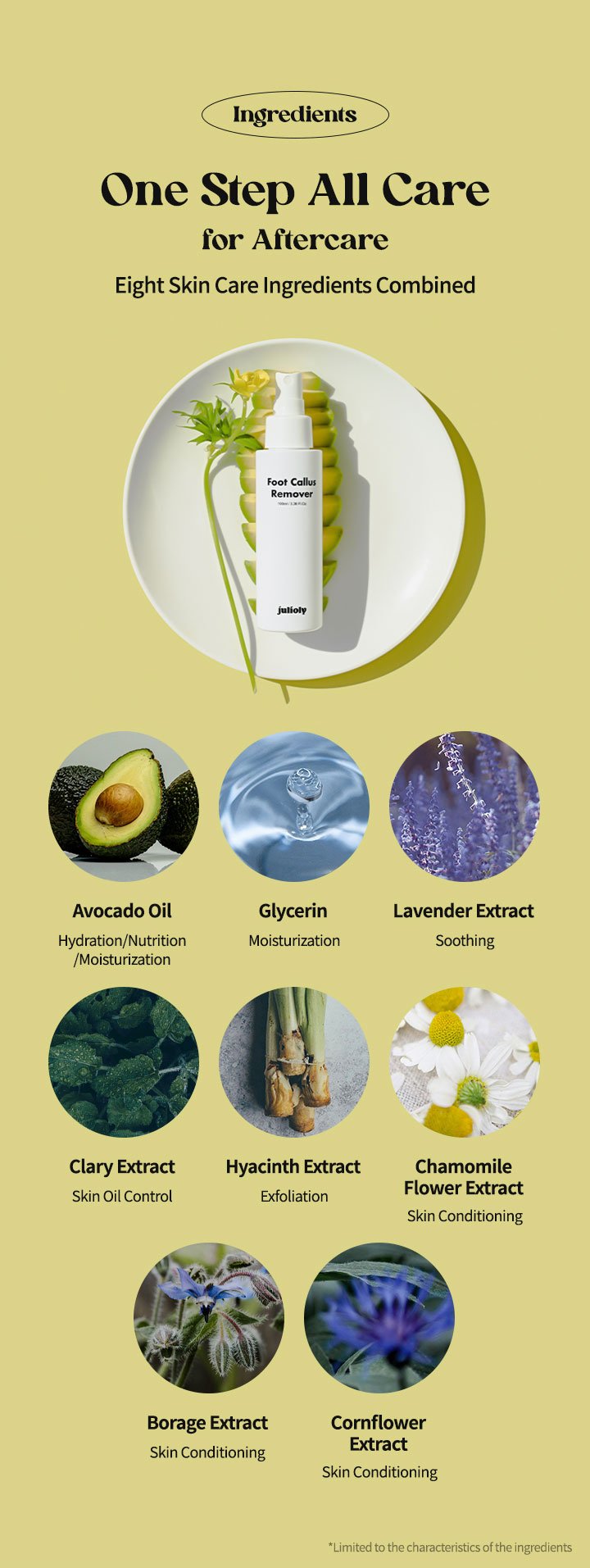 - Avocado and 8 plant-based ingredients gently hydrate and remove dead skin.