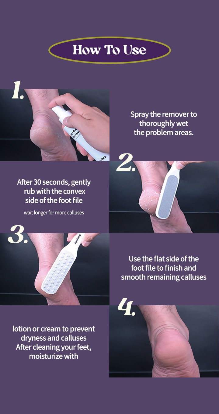 Spray, rub, and reveal soft, smooth feet in just 30 seconds