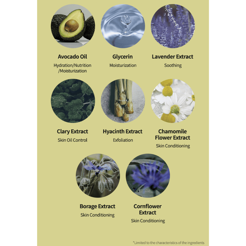 - Avocado and 8 plant-based ingredients gently hydrate and remove dead skin.